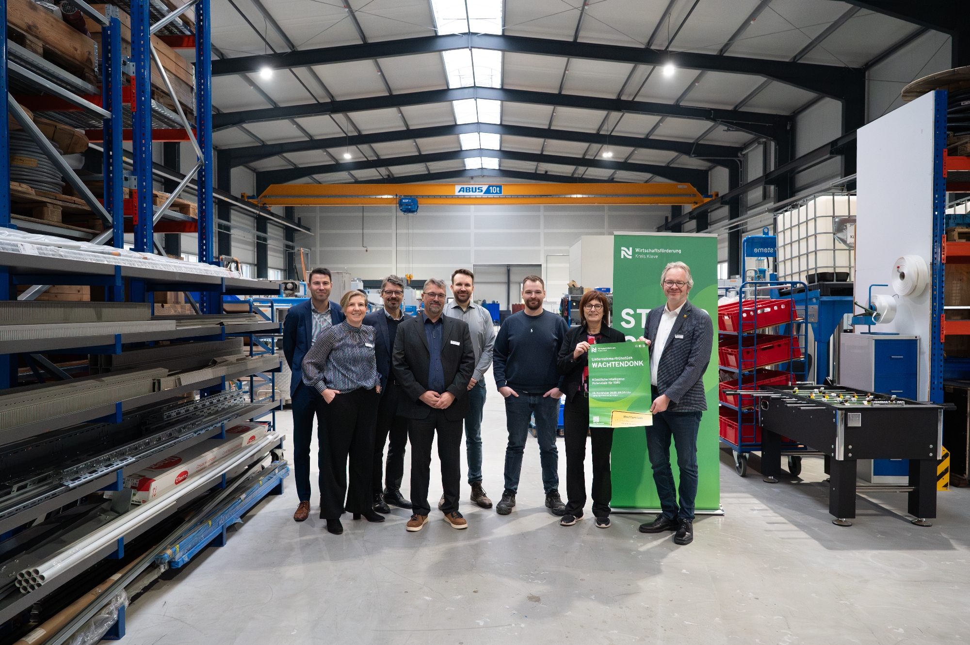 Wie können kleine und mittelgroße Unternehmen für sich gewinnbringend Künstliche Intelligenz einsetzen? Antworten auf diese Frage erhielten zahlreiche Gäste nun beim Unternehmerfrühstück der Wirtschaftsförderung Kreis Kleve in Wachtendonk. In den Räumen der Jerko Sprühsysteme GmbH wurden die Teilnehmenden zunächst von Bürgermeister Paul Hoene begrüßt. Hoene betonte, dass sich die Anzahl der sozialversicherungspflichtigen Beschäftigungsverhältnisse in der Gemeinde in den vergangenen Jahren und Jahrzehnten deutlich erhöht habe. Der Bürgermeister kündigte an, weiterhin die Wege für nachhaltiges Wachstum in Wachtendonk ebnen zu wollen. „Wir wollen weiterwachsen, verbinden dies mit ökologischen und sozialen Zielen“, sagte Hoene. Kreisweite Entwicklungen erfuhren die Gäste von Brigitte Jansen, der Geschäftsführerin der Wirtschaftsförderung Kreis Kleve, die auch die vielfältigen Aktivitäten der Kreis-WFG vorstellte.